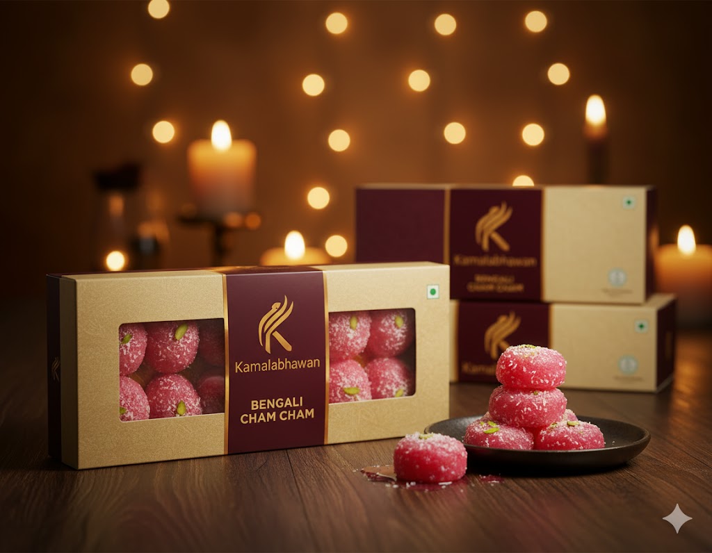 Cham Cham is a versatile dessert loved during Diwali, Durga Puja, weddings, birthdays, family gatherings, or as a special treat for guests. Its elegant look, soft texture, and classic taste make it a favourite addition to sweet boxes, festive hampers, and celebration trays.