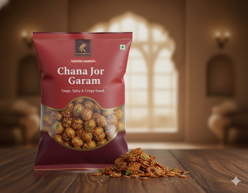 Chana Jor Garam is a popular Indian snack made from flattened, roasted black gram seasoned with a lively mix of traditional spices. Its crisp texture and bold tangy flavour make it a perfect anytime snack that appeals to all age groups.