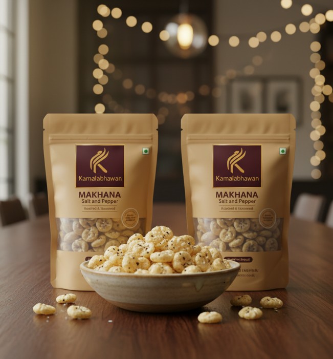Light, crunchy, and irresistibly seasoned — Kamalabhawan Makhana Salt & Pepper is the perfect balance of health and flavor. Made from handpicked fox nuts, slow-roasted to perfection, and delicately seasoned with natural rock salt and freshly ground black pepper, this guilt-free snack is as nourishing as it is delicious.